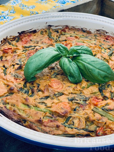 A savory eggless quiche filled with the flavors of summer: fresh asparagus, tomatoes, lemon, and three different herbs!